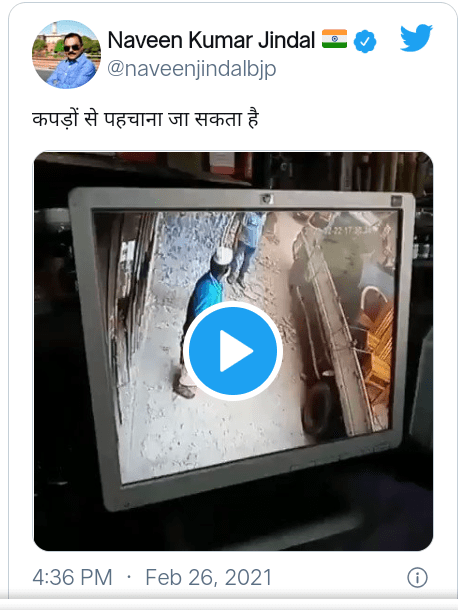 BJP Delhi social media head Naveen Kumar also shared the video. He wrote, “कपड़ों से पहचाना जा सकता है” referring to Prime Minister Modi’s statement during anti-CAA protests that those inciting violence “can be identified by their clothes”. His tweet was quote-tweeted by @seriousfunnyguy who is followed by PM Modi, Piyush Goyal, Smriti Irani and Kapil Mishra.