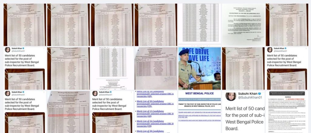 A plethora of other users – Kalpana Srivastav, Sameet Thakkar and Minty Sharma – alluded that a majority of candidates recruited as sub-inspectors in West Bengal police hail from the Muslim community. The list is also widespread on Facebook.