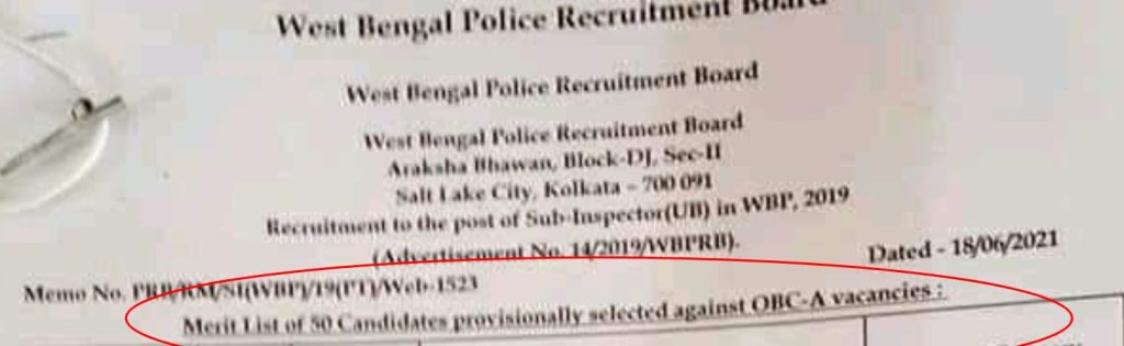 WBPRB announced separate lists (1 and 2) of candidates provincially selected against OBC-B vacancies where a majority of the names are Hindus.